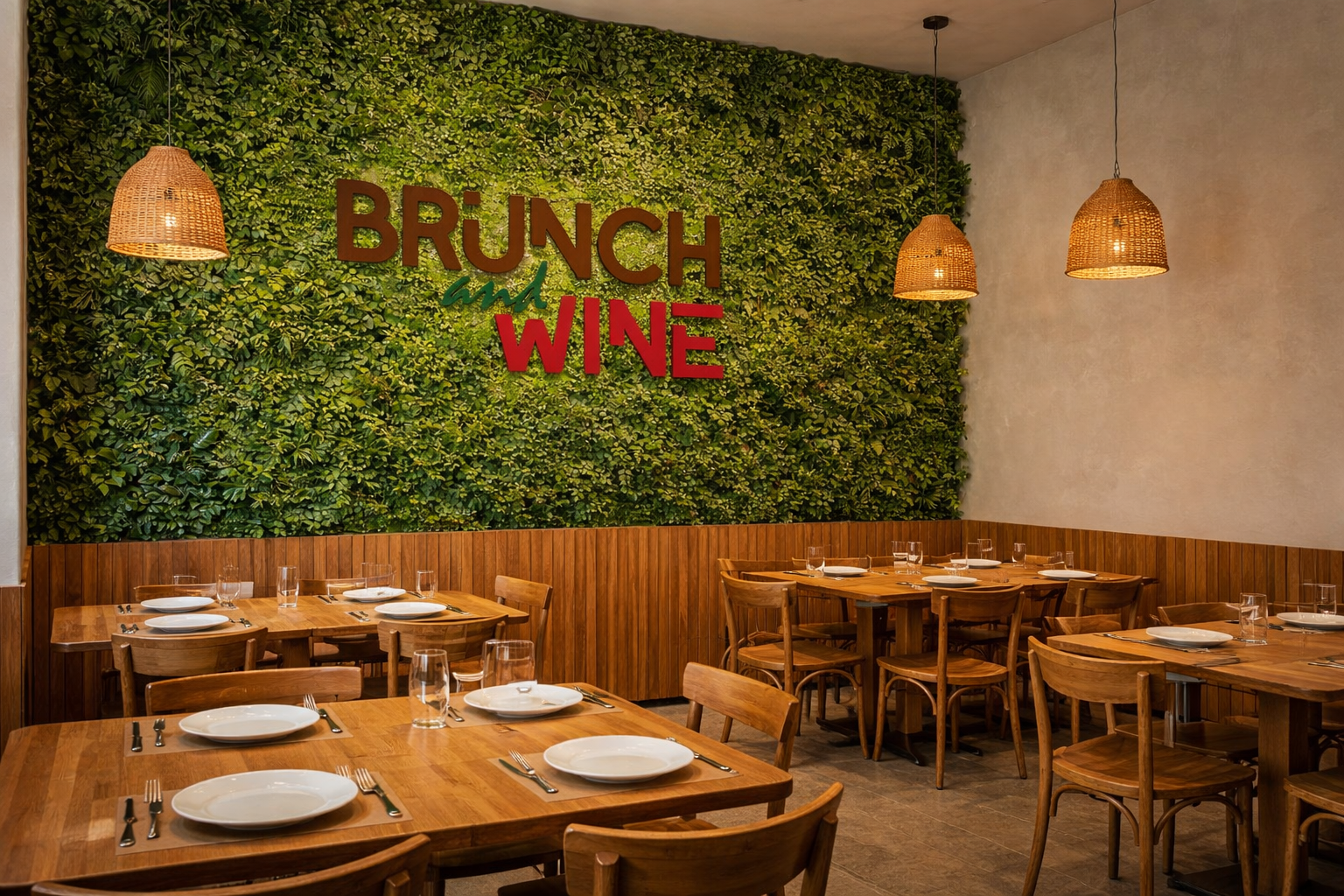 Context: Brunch and Wine is a boutique restaurant concept designed as an exclusive, high-detail environment with a limited capacity of only 6 to 8 tables. The project required a brand identity that felt both sophisticated and welcoming, balancing the casual nature of a brunch spot with the refined atmosphere of a wine lounge.